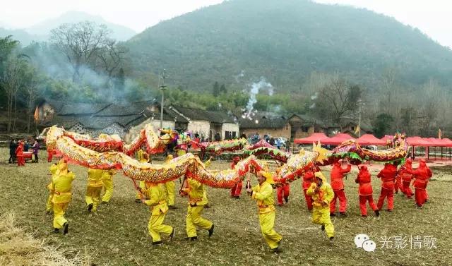 这天清晨,东方已开始放亮,无数的星星似乎感知到了古村落的节日味道,还在天空上一闪一闪地眨着眼睛,依依不舍,久久不肯离去。杀猪宰羊声在村落时时响起,并在山谷间久久回荡;熬腊八粥、烧浆点豆腐、炸爆米花的缕缕炊烟,从一棵棵古树旁的老宅升起;绿色年货的展销棚,在路边接连撑起;踩高跷、舞龙灯、跳秧歌的队伍,以及人流、车流,渐渐向秦家老屋主场地汇集。